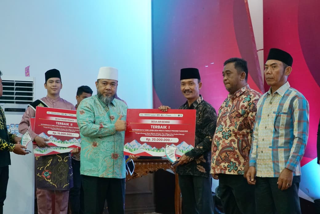 Berandang.com – Gubernur Bengkulu Helmi Hasan menyerahkan langsung penghargaan kepada para pemenang Lomba Desa Wisata Tahun 2025 dalam acara Malam Anugerah Desa Wisata yang digelar di Balai Semarak, Rabu (19/11).