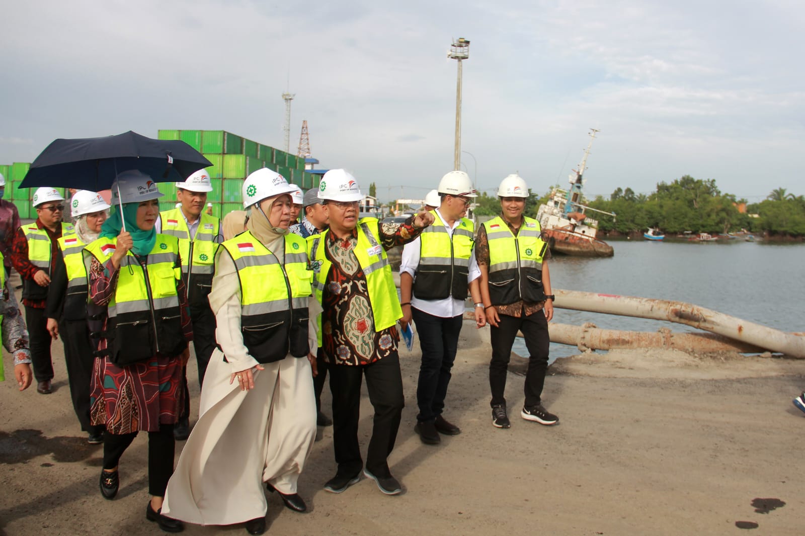Usai mendengarkan paparan dari Pelindo, rombongan menteri lanjut meninjau lokasi Dermaga Samudera yang merupakan lokasi aktivitas bongkar muat dan juga melihat langsung lahan lokasi kawasan industri pelabuhan Pulau Baai Bengkulu.