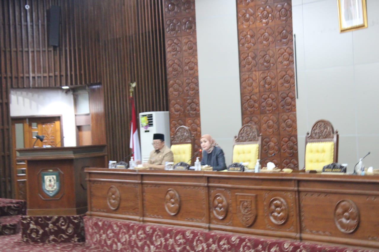 Berandang – Gubernur Bengkulu Rohidin Mersyah memberikan Jawaban Gubernur terhadap Pemandangan Umum Fraksi-fraksi atas Raperda tentang Pertanggungjawaban Pelaksanaan APBD Provinsi Bengkulu Tahun Anggaran 2021 (Sisa Perhitungan), pada Rapat Paripurna DPRD Provinsi Bengkulu, di Ruang Rapat Paripurna, Senin (6/6).