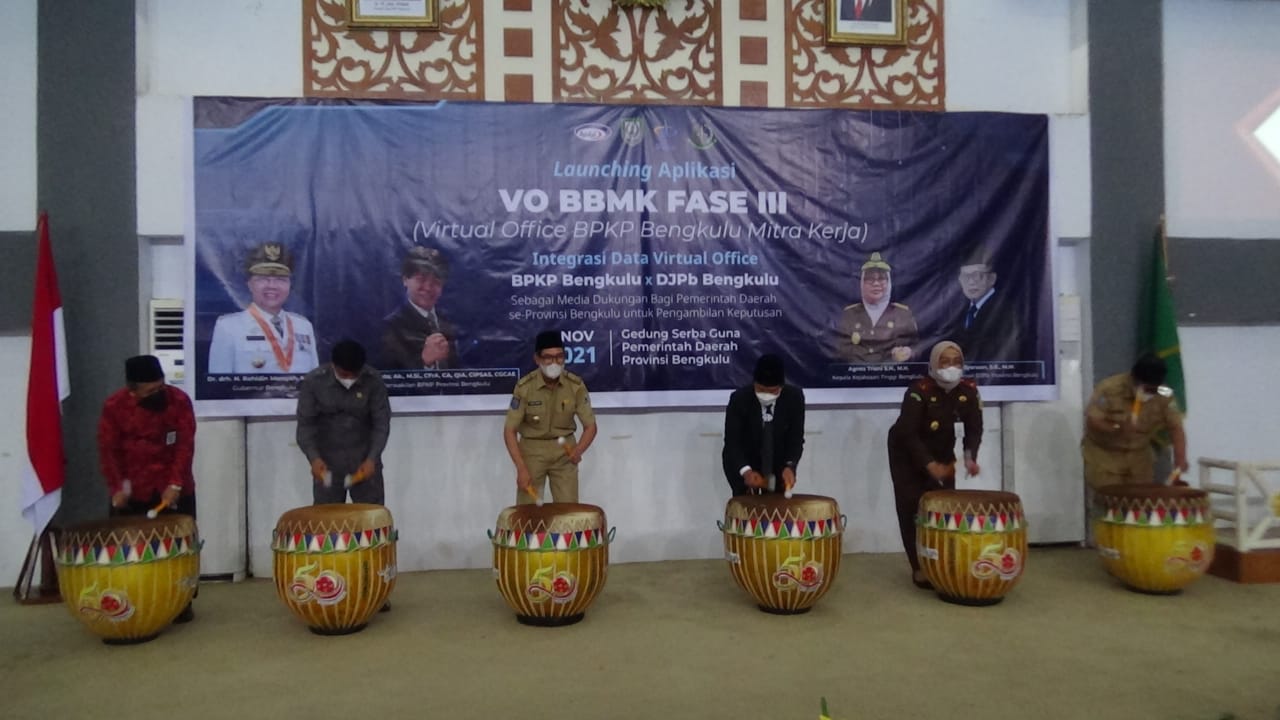 Berandang – Perwakilan Badan Pengawasan Keuangan dan Pembangunan (BPKP) Provinsi Bengkulu meluncurkan Aplikasi Virtual Office BPKP Bengkulu Mitra Kerja (VO-BBMK) Fase III, Integrasi Data Virtual Office dengan Data Kanwil Ditjen Perbendaharaan (DJPb) Provinsi Bengkulu, di Gedung Serba Guna Pemprov Bengkulu, Selasa (2/11).