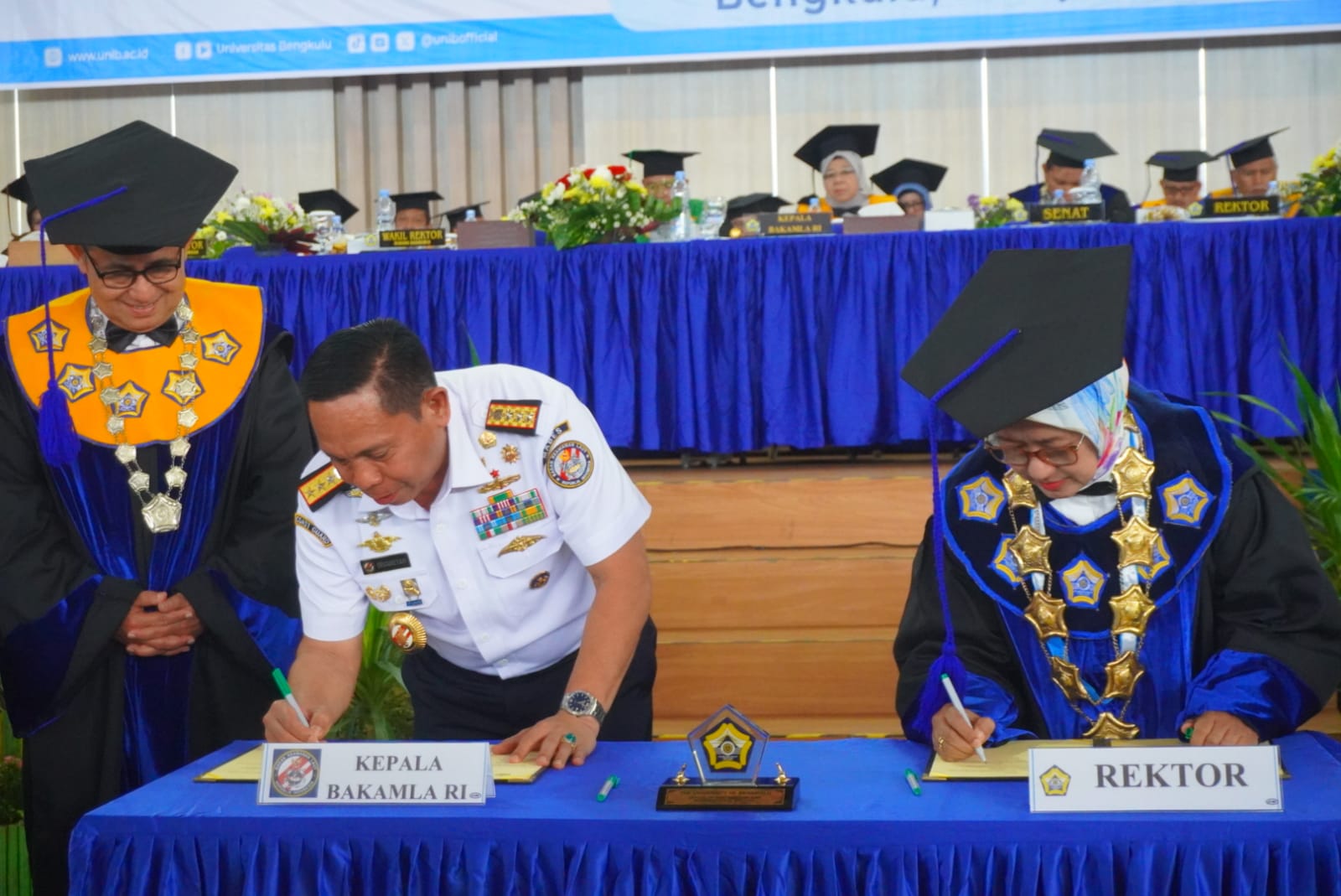 Sekretaris Daerah (Sekda) Isnan Fajir, hadir Rapat Senat Terbuka dalam rangka Dies Natalis ke-42 Universitas Bengkulu dan Orasi Ilmiah oleh Kepala Badan Keamanan Laut RI (BAKAMLA) Laksamana Madya TNI DR. Irvansyah, S.H.,M.TR. OPSLA, di gedung GSG Universitas Bengkulu, Rabu (24/04/2024).