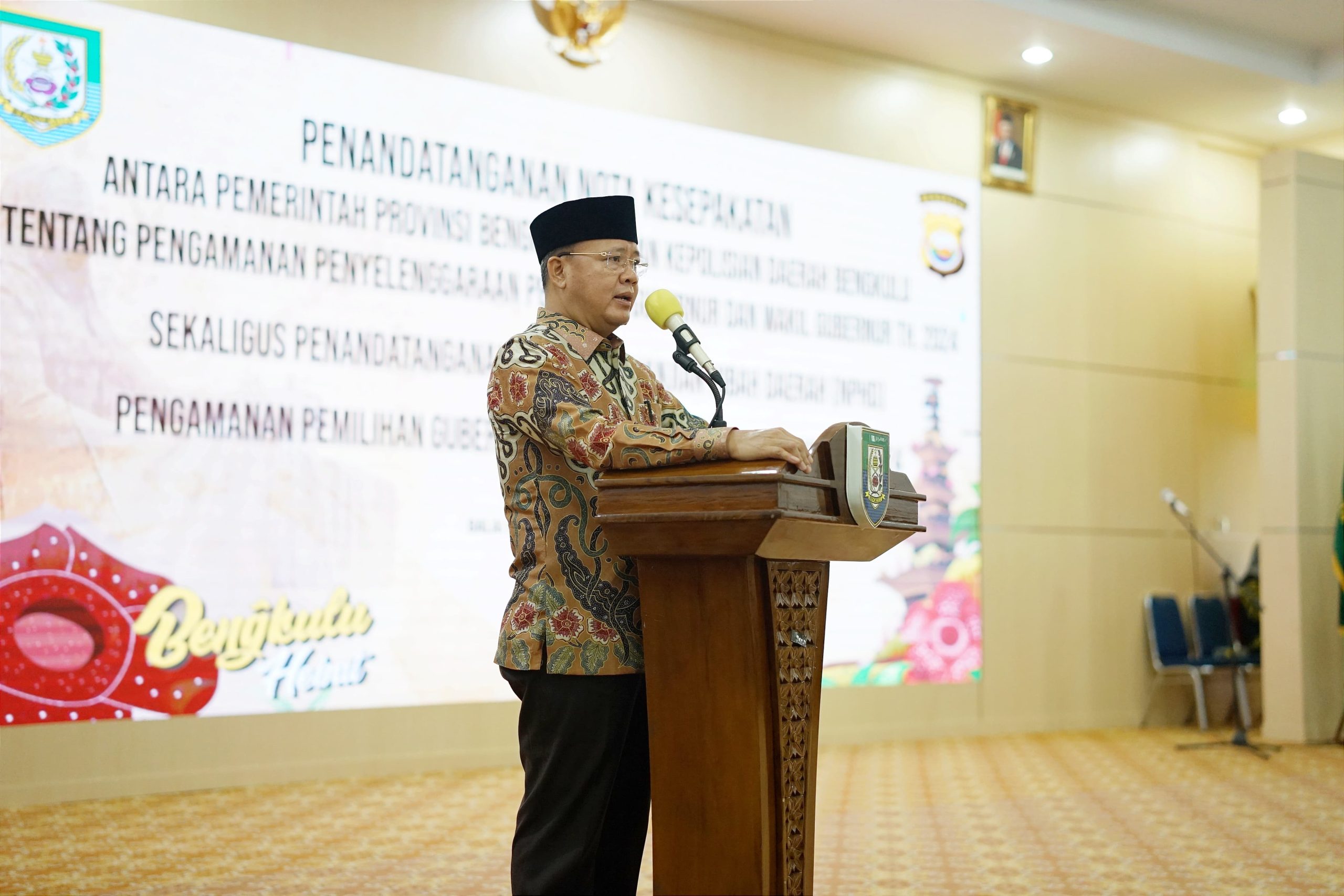 “Kita baru saja mengikuti penandatanganan NPHD terkait hibah anggaran pengamanan Pilkada Gubernur dan Wakil Guberur yang akan dilaksanakan pada 27 November mendatang. Lalu, secara nasional juga akan dilaksanakan Pilkada serentàk di 37 Provinsi di 545 kabupaten dan kota,” kata Gubernur Rohidin.