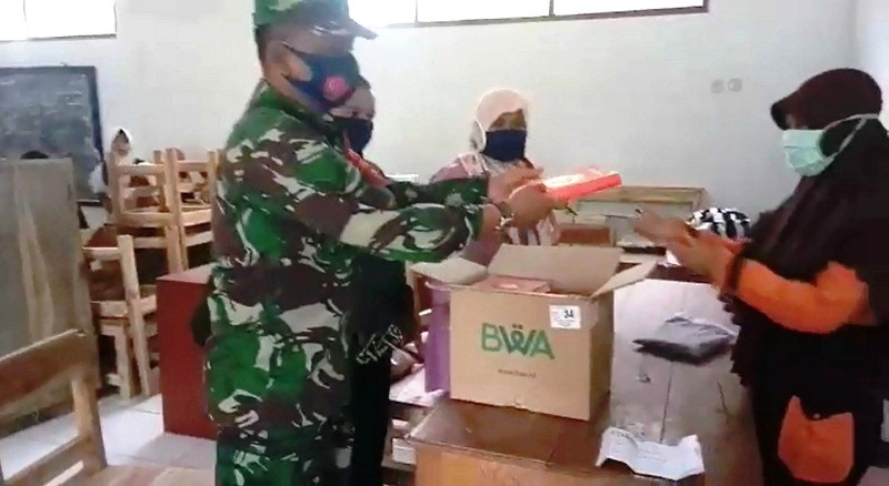 Brebes – Sebanyak 20 buah mushaf Al Quran bantuan Badan Wakaf Al Quran (BWA) Kecamatan Bumiayu, Kabupaten Brebes, Jawa Tengah, telah disalurkan Sertu Sunaryo, Babinsa Koramil 12 Bantarkawung, Kodim 0713 Brebes, di lokasi TMMD Reguler 109 Brebes, Desa Kalinusu, Kecamatan Bumiayu, Brebes. Sabtu (17/10/2020).