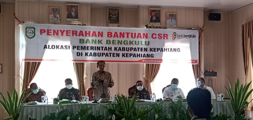 Bupati Kepahiang Dr. Ir Hidayatullah Sjahid, MM IPU mengapresiasi dengan baik atas kepedulian Bank Bengkulu melalui penyerahan bantuan CSR sebesar Rp 279.412.000,-