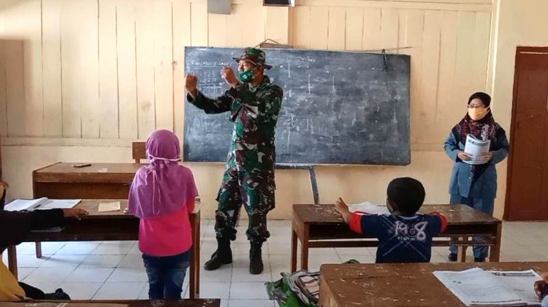 “Kita kumpulkan anak-anak sekolah yang sedang mengumpulkan dan mengambil tugas daring sekolah, untuk diberikan wawasan 3M, yaitu Memakai masker, Mencuci tangan, dan Menjaga jarak,” ungkapnya, Sabtu (17/10/2020).