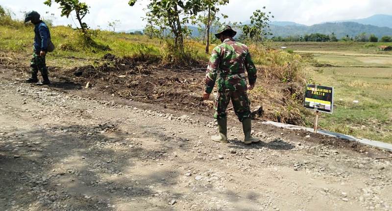 Brebes – Pengecekan finishing pembangunan jalan TMMD Reguler 109 Kodim 0713 Brebes, yaitu pengerasan sepanjang 2,2 kilometer lebar 4-6 meter, di Desa Kalinusu, Kecamatan Bumiayu, Kabupaten Brebes, Jawa Tengah, secara berkala juga dilakukan Pasiter Kodim Brebes, Kapten Arhanud Nediono, selaku koordinator lapangan TMMD Reguler