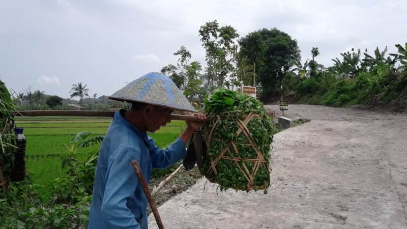 Dirinya menjelaskan bahwa, sebelum adanya badan jalan hasil TMMD Reguler, para peternak yang ada di desanya juga sangat kesulitan saat mencari rumput pakan ternaknya.Hal itu disebabkan karena sebelumnya belum adanya jalan yang memadai, yaitu hanya jalan setapak dan pematang sawah serta terputus 4 sungai kecil sehingga tidak bisa dilalui sepeda motor.