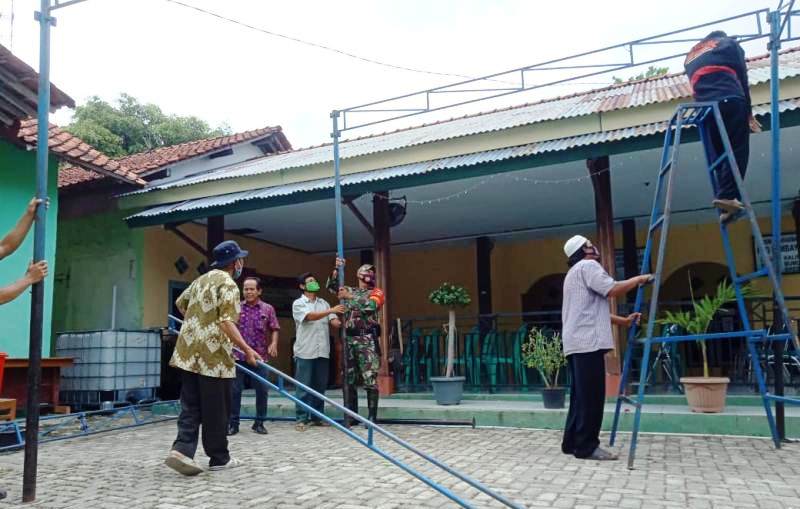 Salah satunya adalah pemasangan layos yang dilakukan pihak desa setempat yang dibantu warga setempat dan juga anggota Satgas TMMD, di balai desa. Senin (19/10/2020).