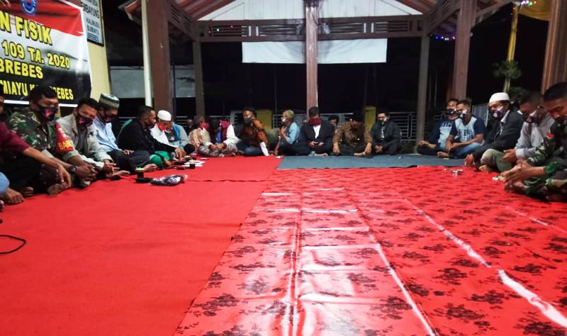 Brebes – Masyarakat Desa Kalinusu, Kecamatan Bumiayu, Kabupaten Brebes, Jawa Tengah, menggelar acara pelepasan Satgas TMMD Reguler 109 Kodim 0713 Brebes, yang purna tugas satu bulan penuh setelah melaksanakan pembangunan infrastruktur jalan antar dusun sepanjang 2,2 kilometer lebar 4-6 meter dan juga merehab 5 unit RTLH (Rumah Tidak Layak Huni) milik warga kurang mampu di desa tersebut. Selasa malam, (20/10/2020).