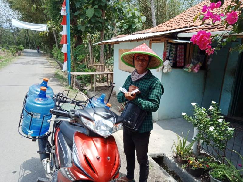 Nur Alim mengaku, harga per galon adalah Rp. 5 ribu, sementara khusus untuk ke Dusun Kedung Kandri yang baru saja terbebas dari keterisoliran selama puluhan tahun berkat jalan TMMD itu, dirinya hanya akan menambah adalah seribu sehingga menjadi Rp. 6 ribu.