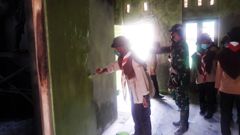 Pengecatan Rumah Kenang-kenangan di Lokasi TMMD Reguler Brebes Dibantu Pramuka SWK