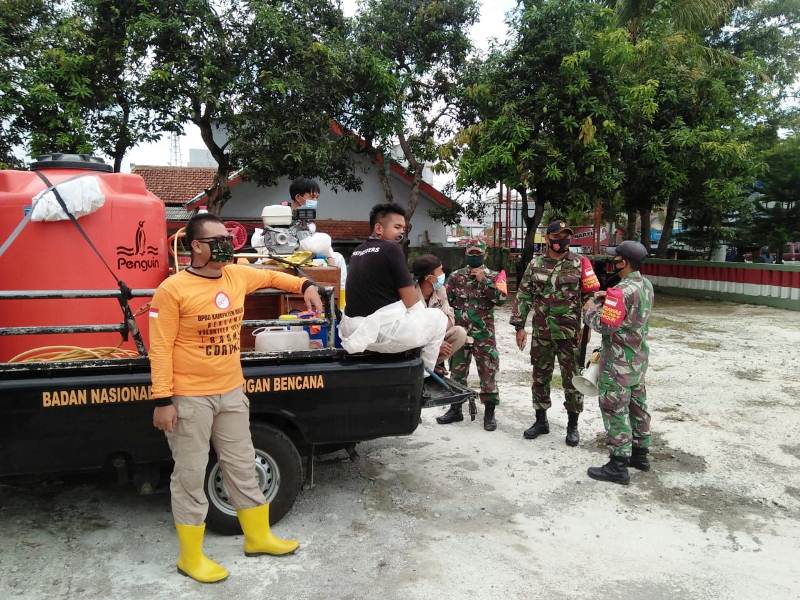 Brebes – Penyemprotan cairan disinfektan dilakukan kembali oleh Tim Gugus Tugas Pencegahan Covid-19 Kecamatan Bumiayu, Kabupaten Brebes, Jawa Tengah, melalui BPBD Bumiayu, di lokasi TMMD Reguler 109 Brebes, di Desa Kalinusu, Bumiayu. Kamis (15/10/2020).