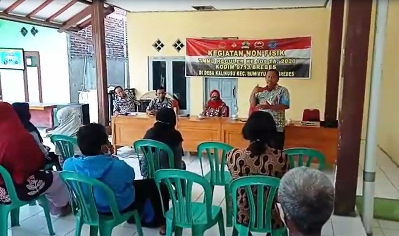 Brebes – Dinas Koperasi dan Usaha Mikro Kabupaten Brebes, Jawa Tengah, memberikan penyuluhan perkoperasian kepada warga masyarakat Desa Kalinusu, Kecamatan Bumiayu, Kabupaten Brebes, untuk mengisi kegiatan non fisik TMMD Reguler 109 Kodim 0713 Brebes.