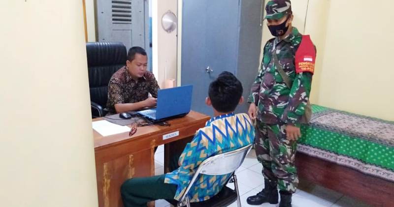 Tampak Pelda Ibrahim, anggota tim jurnalistik TMMD Reguler 109 Brebes, sedang melakukan mewawancarai Kades Kalinusu, Wasid (44), dan juga Sekdes Kalinusu, Sugiarto, SH (37), batik coklat, di Kantor Balai Desa Kalinusu, untuk menambah keakuratan data dalam pemberitaan. Sabtu (17/10/2020).