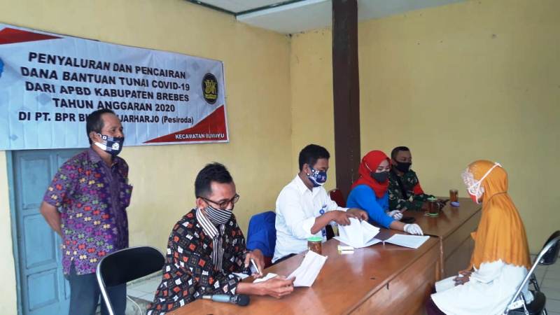 Brebes – Di sela–sela tugas tambahannya sebagai anggota jurnalistik TMMD Reguler 109 Brebes, di Desa Kalinusu, Kecamatan Bumiayu, Kabupaten Brebes, Jawa Tengah, Serda Ariyanto, salah satu Babinsa Koramil 08 Bumiayu Kodim 0713 Brebes, memback up Babinsa Kalinusu, untuk pendampingan kepada masyarakat Kalinusu penerima dana BLT covid-19.