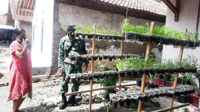 Brebes – Ditugaskan untuk membackup Satgas TMMD Reguler 109 Brebes, dalam memangun sasaran non fisik masyarakat Desa Kalinusu, Kecamatan Bumiayu, Kabupaten Brebes, Jawa Tengah, para Babinsa Koramil 08 Bumiayu, Kodim 0713 Brebes, terus mensosialisasikan KRPL (Kawasan Rumah Pangan Lestari).