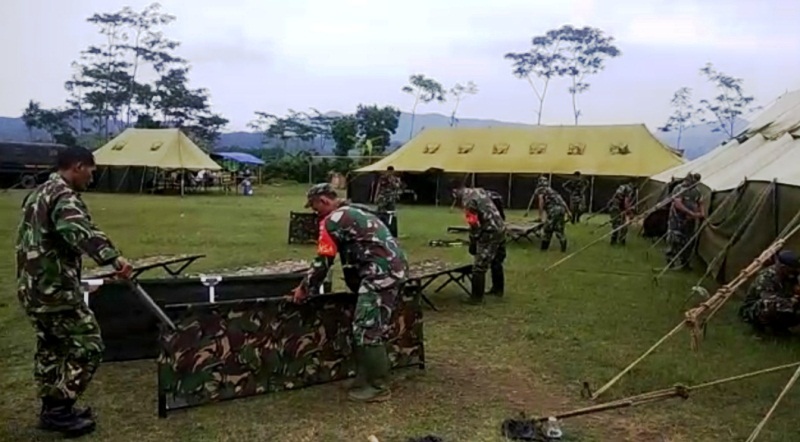 Tampak juga kesibukan untuk mengemasi velbed, meja dan kursi lapangan, papan sketsel dan peralatan lainya yang digunakan di Poskotis TMMD, untuk dikembalikan ke kesatuan dan juga pihak Pemerintah Desa Kalinusu, maupun pihak lainnya. Rabu (21/10/2020).