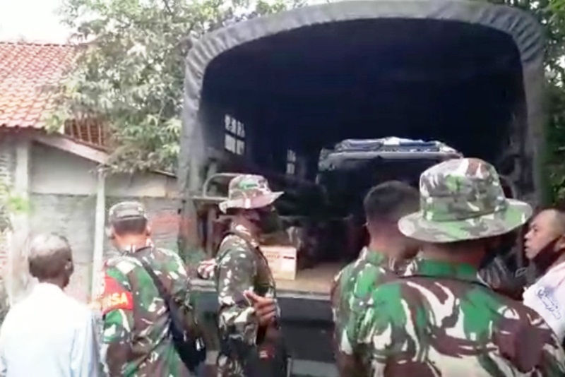 Tampak truk dari Yonif 406 Candra Kusuma, sudah terparkir di Dusun Karanganyar RT. 02 RW.01, Kalinusu, untuk membawa mereka kembali ke kesatuannya masing-masing.