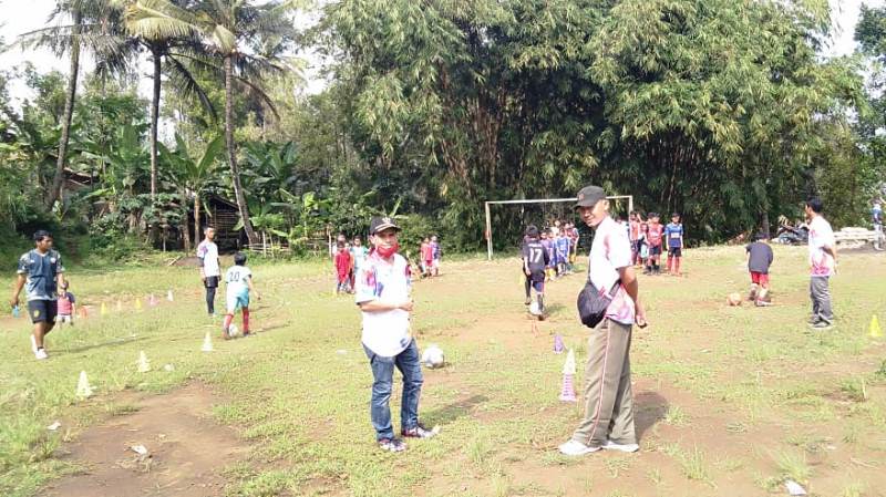 Tampak dirinya memberikan motivasi kepada remaja desa yang sedang berlatih sepakbola di Lapangan Sepakbola Menggala, Desa Langkap.