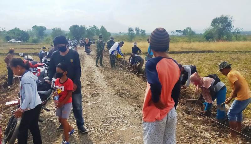 Untuk pengurukan dan penaburan pasir dan batu terus dikebut dengan gotong royong antara Satgas TMMD dengan warga setempat, sehingga diharapkan dalam 2 hari ini selesai. Itu karena tanggal 21 Oktober 2020 nanti, Satgas TMMD akan purna tugas.