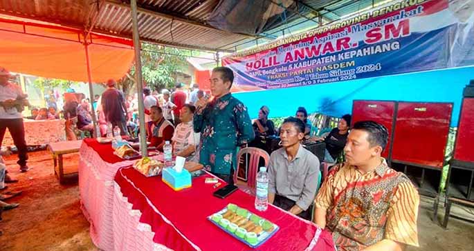 Tampak warga antusias menyambut kedatangan Anggota DPRD Provinsi Bengkulu, Holil Anwar, SM.Politisi dari partai Nasdem ini melaksanakan reses masa persidangan ke- I Tahun 2024.