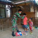 Pati – Bagikan masker kepada warga sembari menyampaikan himbauan Protokol kesehatan, inilah yang dilakukan oleh anggota satgas TMMD Reguler 111 kodim Pati.