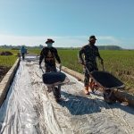 Pati – TNI Manunggal Membangun Desa (TMMD) Reguler Ke-111 Kodim 0718/Pati TA.2021, warga masyarakat desa bersama anggota Satgas TMMD masih melanjutkan pembangunan
