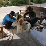 Pati – Anggota Satuan Tugas (Satgas) TNI Manunggal Membangun Desa (TMMD) Reguler Ke-111 Kodim 0718/Pati, dengan cekatan mengerjakan pengacian dinding bagian