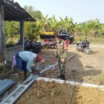 PATI – Anggota Satgas Tentara Manunggal Membangun Desa (TMMD) Reguler ke-111 tahun 2021 Kodim 0718/pati, di Desa Tamansari bersama dengan warga membuat
