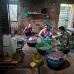 Pati-Disamping tugasnya sebagai anggota satgas TMMD Reguler 111 Kodim Pati, Serda Sukerji salah satu anggita Satgas disela istirahat melaksanakan kegiatan anjangsana atau
