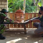 Pati – Dalam Kegiatan TMMD anggota satgas disela istirahat memanfaatkan waktu dengan komsos kewarung warga, hal itulah yang dilakukan anggota satgas Serda