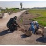 Pati –Tidak Surut semangat walau dibawah Panas Mentari Anggota Satgas dan Masyarakat (TMMD) dalam pelaksanaan pembangunan berem yang digunakan untuk penguat jalan