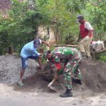 Pati – Satuan Tugas TNI Manunggal Membangun Desa (TMMD) Ke-111 Kodim 0818/Pati melaksanakan kegiatan pengecoran rabat jalan sepanjang 1.450 meter yang nantinya