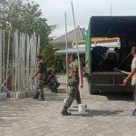 PATI – Lokasi TNI Manunggal Membangun Desa (TMMD) Reguler ke-111 Kodim 0718/Pati, anggota Satuan Tugas (Satgas) mulai membongkar umbul-umbul. Umbul-umbul tersebut terpasang