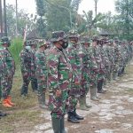 Pati – Satgas TMMD Reguler Ke-111 Kodim 0718/Pati berkumpul di halaman penggilingan padi Desa Tamansari yang dijadikan sebagai tempat berlangsungnya apel