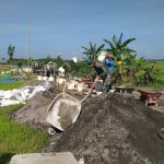 ati – Anggota satgas TNI Manunggal Membangun Desa (TMMD) Reguler Ke-111 Kodim 0718/Pati bersama warga masyarakat Desa Tamansari melakukan pengerjaan sasaran fisik