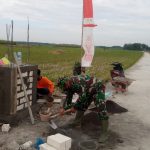 Pati – Anggota Satgas TMMD Reguler 111 Kodim 0718/Pati yang diterjunkan di Desa Tamansari, Kecamatan Jaken, Kabupaten Pati, terus mengebut pengerjaan Monumen/Tugu