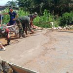 Bengkayang – Anggota Satgas TMMDS ke-111 Kodim 1202/Skw pimpinan Pjs Danramil 04/Seluas Serma Hamdani ini langsung menggeber pengecoran jalan rabat beton. Warga