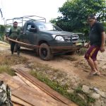 Bengkayang – Warga dan Anggota Satgas TMMD ke-111 Kodim 1202/ Skw juga menyiapkan material kayu untuk jembatan. Lokasi penyiapan material kayu tersebut