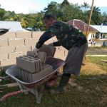 Bengkayang – anggota satgas TMMD ke 111 kodim 1202/skw dalam pengerjaan pembangunan Puskesmas pembantu di desa setangau jaya kec. seluas kab. bengkayang