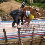Bengkayang- kejar target pembangunan pagar gereja anggota satgas TMMD ke-111 Kodim 1202/skw semangkin bersemangat terlihat saat perangkaiyan besi kaki gereja katolik desa