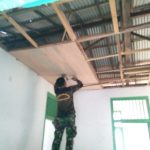 Bengkayang – Pemasangan plafon puskesmas terus dilaksanakan oleh personil Satgas Tentara Manunggal membangun Desa (TMMD) ke-111 Kodim 1202/Singkawang di Desa Sentangau Jaya,
