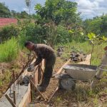 BENGKAYANG — Anggota Satuan Tugas (Satgas) TNI Manunggal Membangun Desa (TMMD) ke 111 Kodim 1202/Singkawang bersama masyarakat Mengecor pondasi Pagar pembangunan Gereja