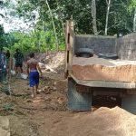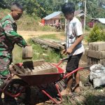 Bengkayang – Satgas Tentara Manunggal membangun Desa (TMMD) 111 Kodim 1202/Singkawang pembuatan adonan semen dengan cara manual untuk pengecoran jalan rabat