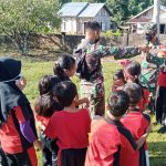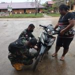 Bengkayang – Satgas TNI Manunggal Membangun Desa (TMMD) Reguler ke-111 Kodim 1202/Singkawang, saat istirahat siang lepas kerja fisik di sasaran ia manfaatkan