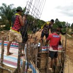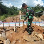 BENGKAYANG – Personil Satuan Tugas (Satgas) TNI Manunggal Membangun Desa (TMMD) Ke-111 Kodim 1202/Singkawang Membuat Cetakan dinding jembatan di Dusun Trimulya Desa