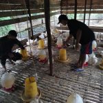 Bengkayang – Anggota Satgas TMMD ke-111, Serda Alvonsius di sela waktu senggang, selesai bekerja di lokasi TMMD, membantu peternak untuk memberikan pakan