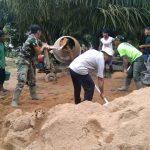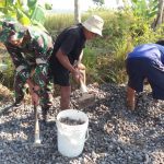 Bengkayang – Personel Satgas TMMD ke-111 Kodim 1202/Skw dibantu dengan warga melakukan pengecoran jalanan yang rusak di Desa Sentangau Jaya, Kecamatan Seluas,