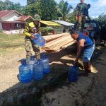 BENGKAYANG – Anggota Satgas TMMD Ke-111/Kodim 1202/Singkawang, Serda Sapriadi Mengangkut galon ke lokasi pembangunan TMMD di Desa Sentangau Jaya Jalan Trans Segorong