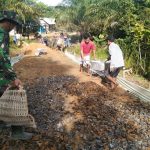 Bengkayang – Personel Satgas TMMD ke-111 Kodim 1202/Skw, bersama warga menyebar batu dalam pembangunan Jalan di Desa Sentangau Jaya Kecamatan Seluas Kabupaten